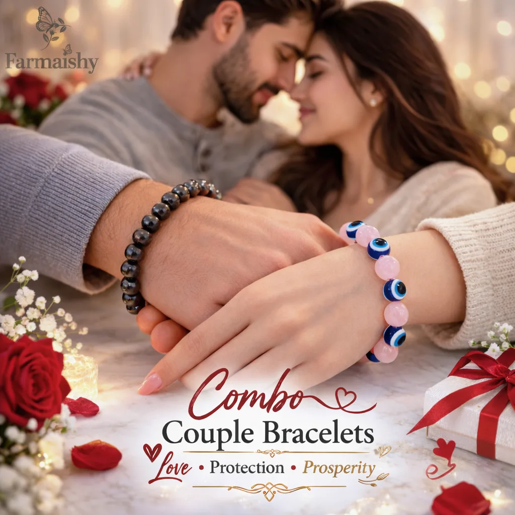 💑 Couple Bracelet Combo – A Symbol of Love, Protection & Connection