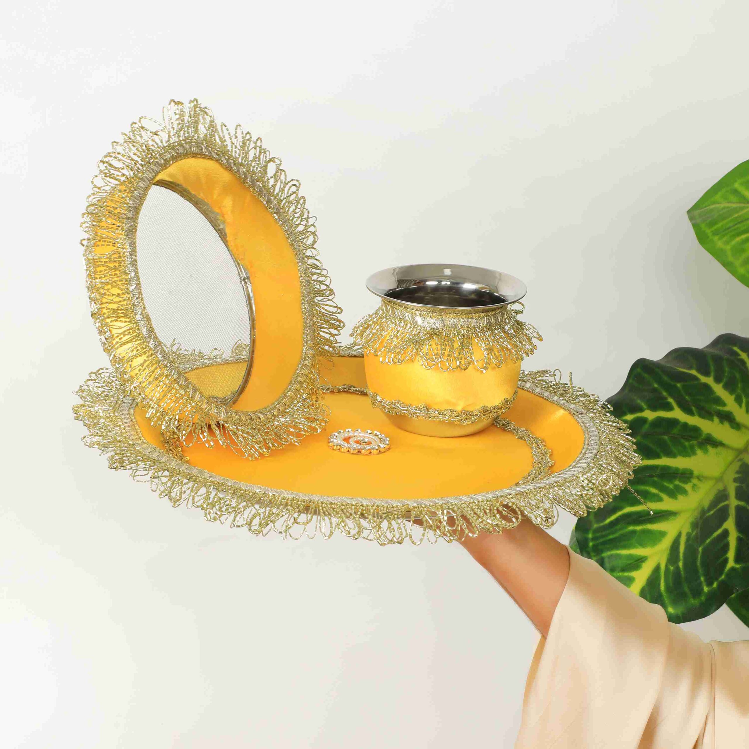 Designer Yellow Karwa Chauth Thali Set
