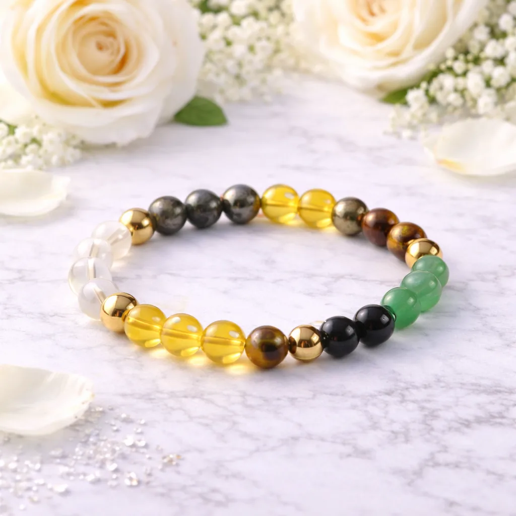 The Dhan Yog Healing Natural Crystal Bracelet has been specially created for individuals who need financial growth, business success, and abundance in life.