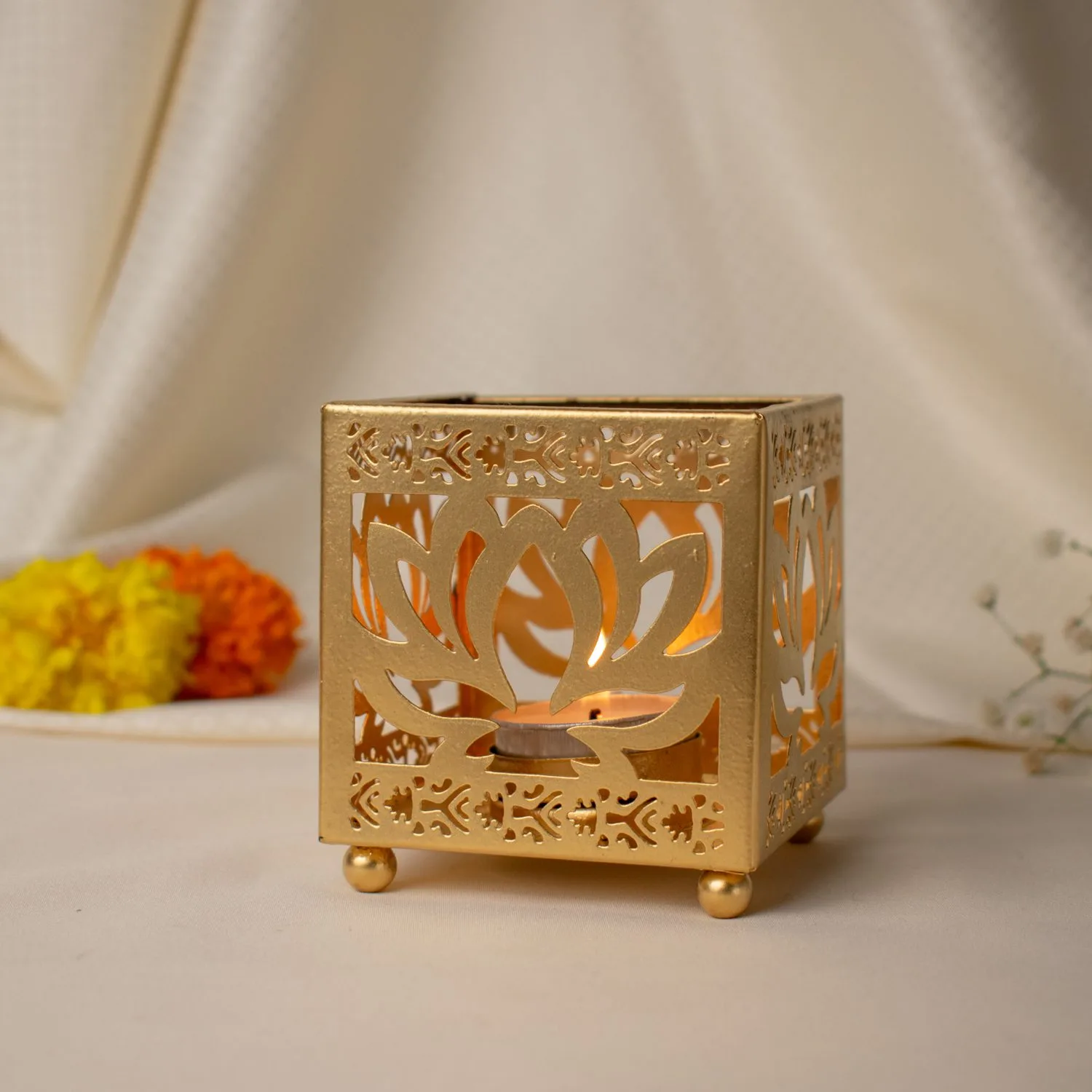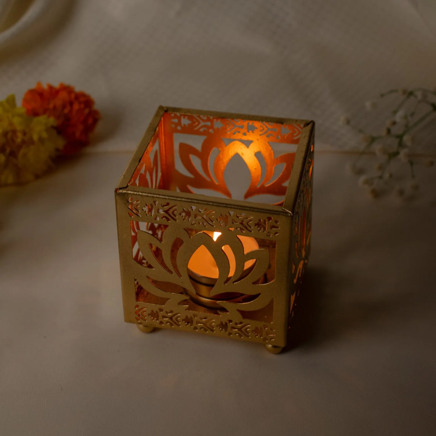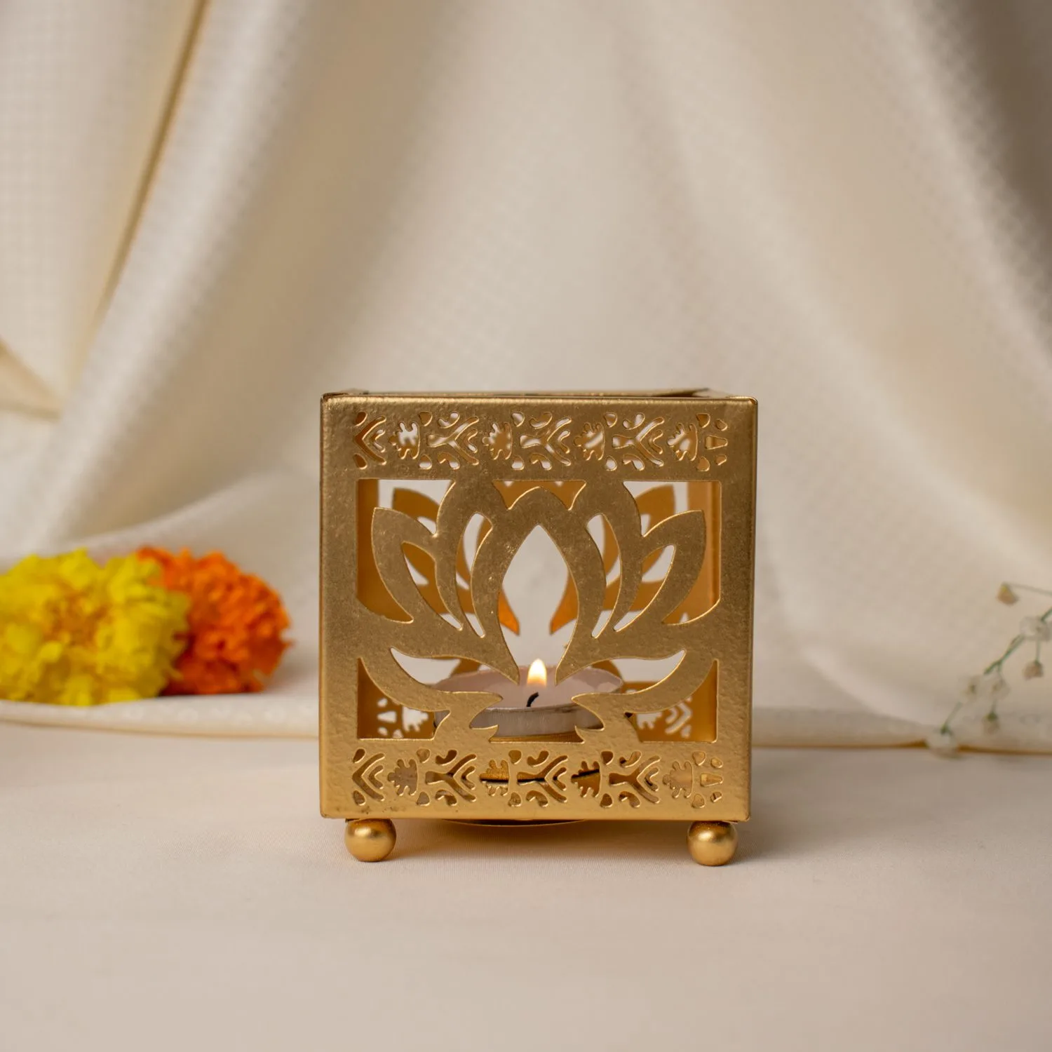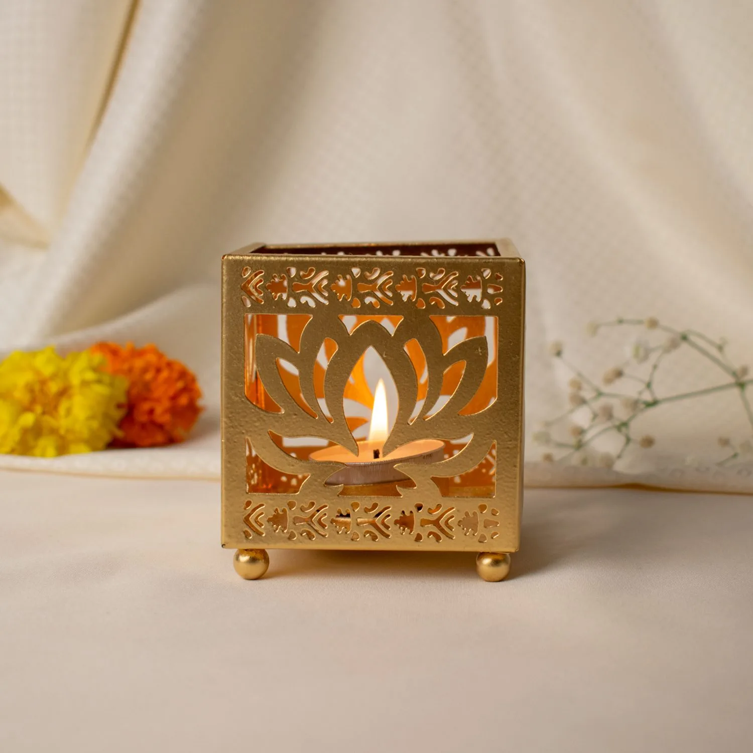 Luxury Lotus Cutwork Golden T-Light Holder