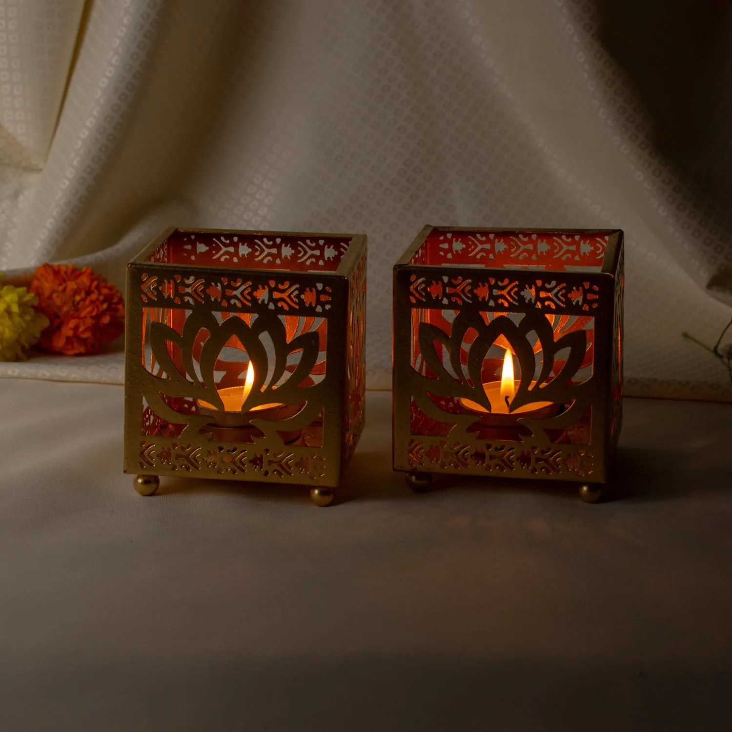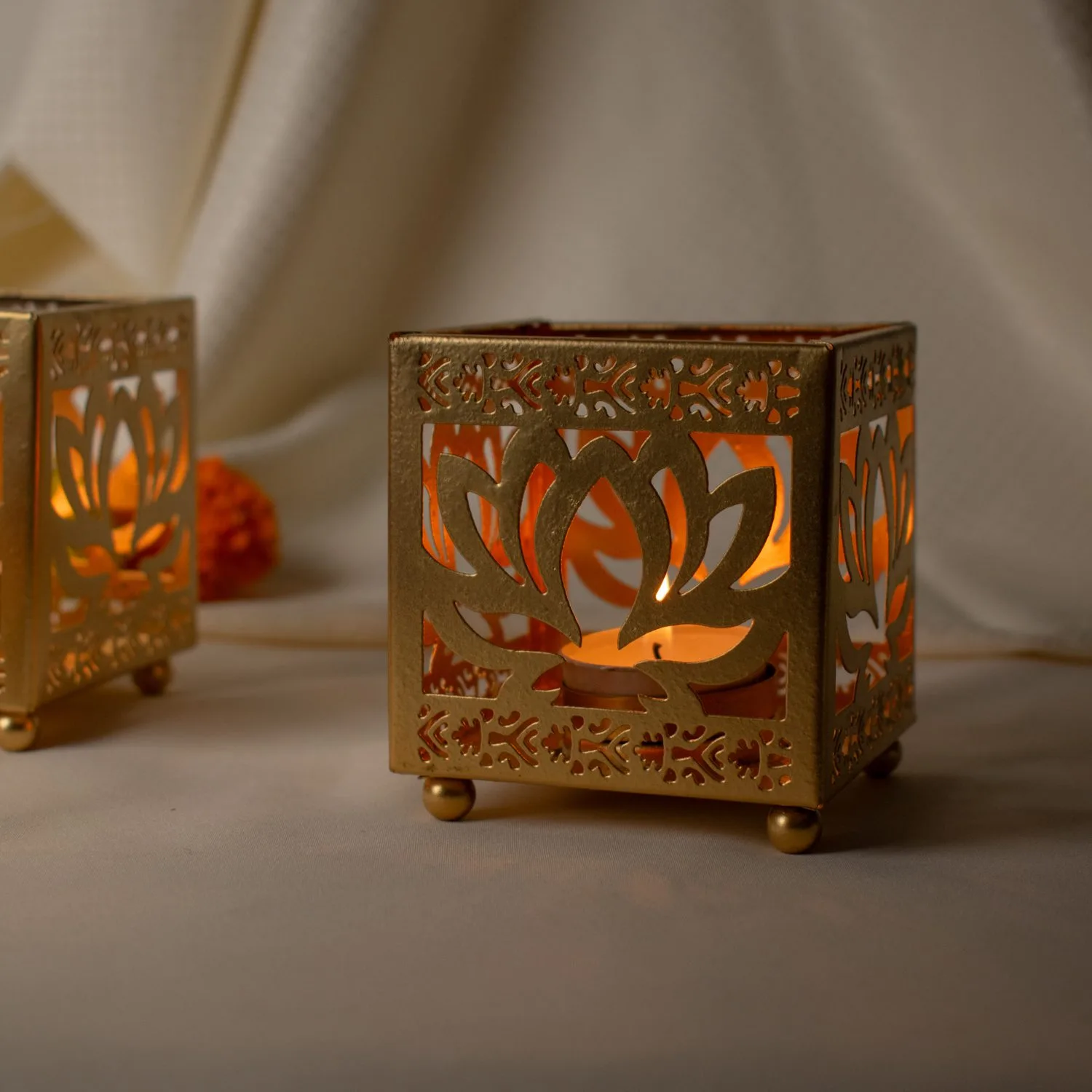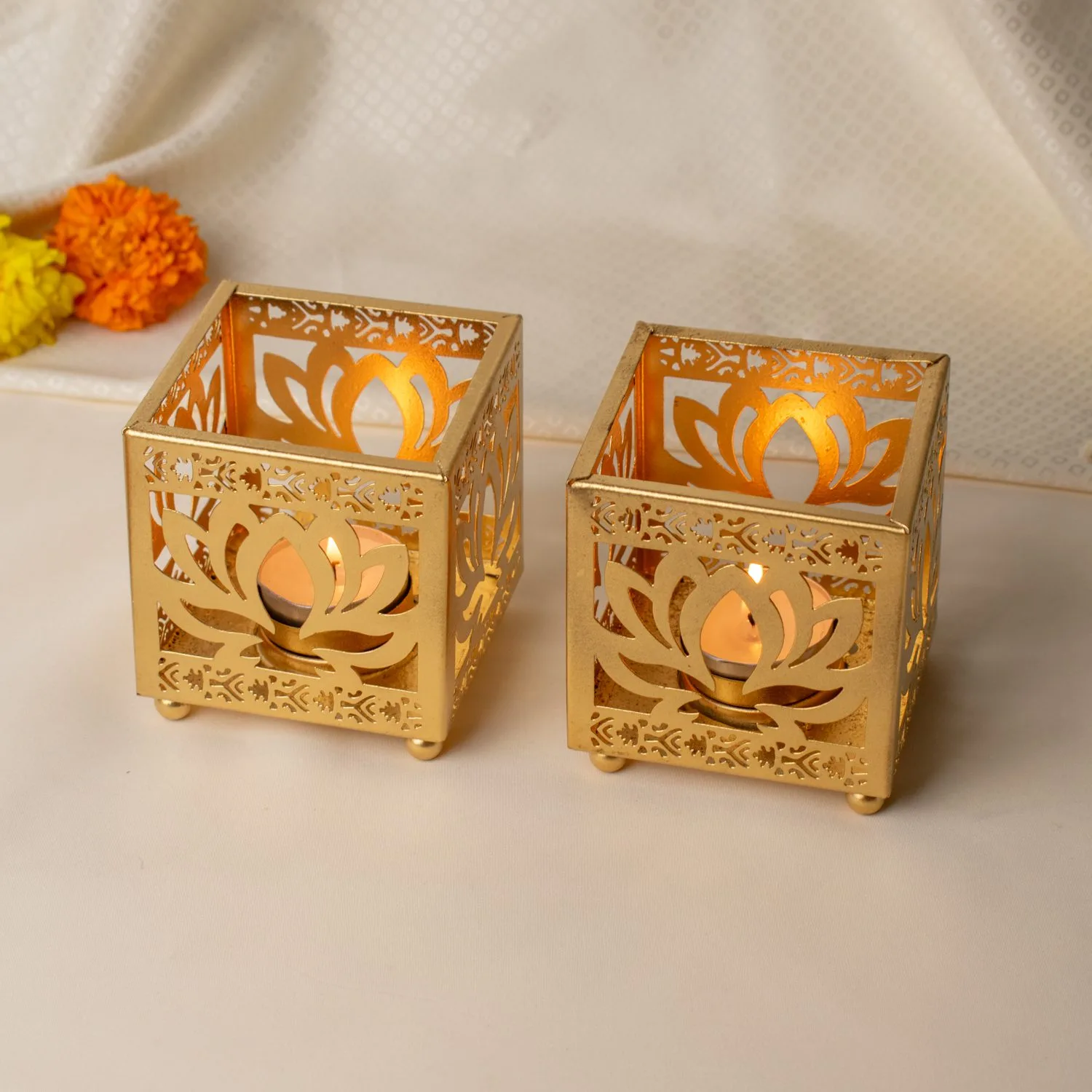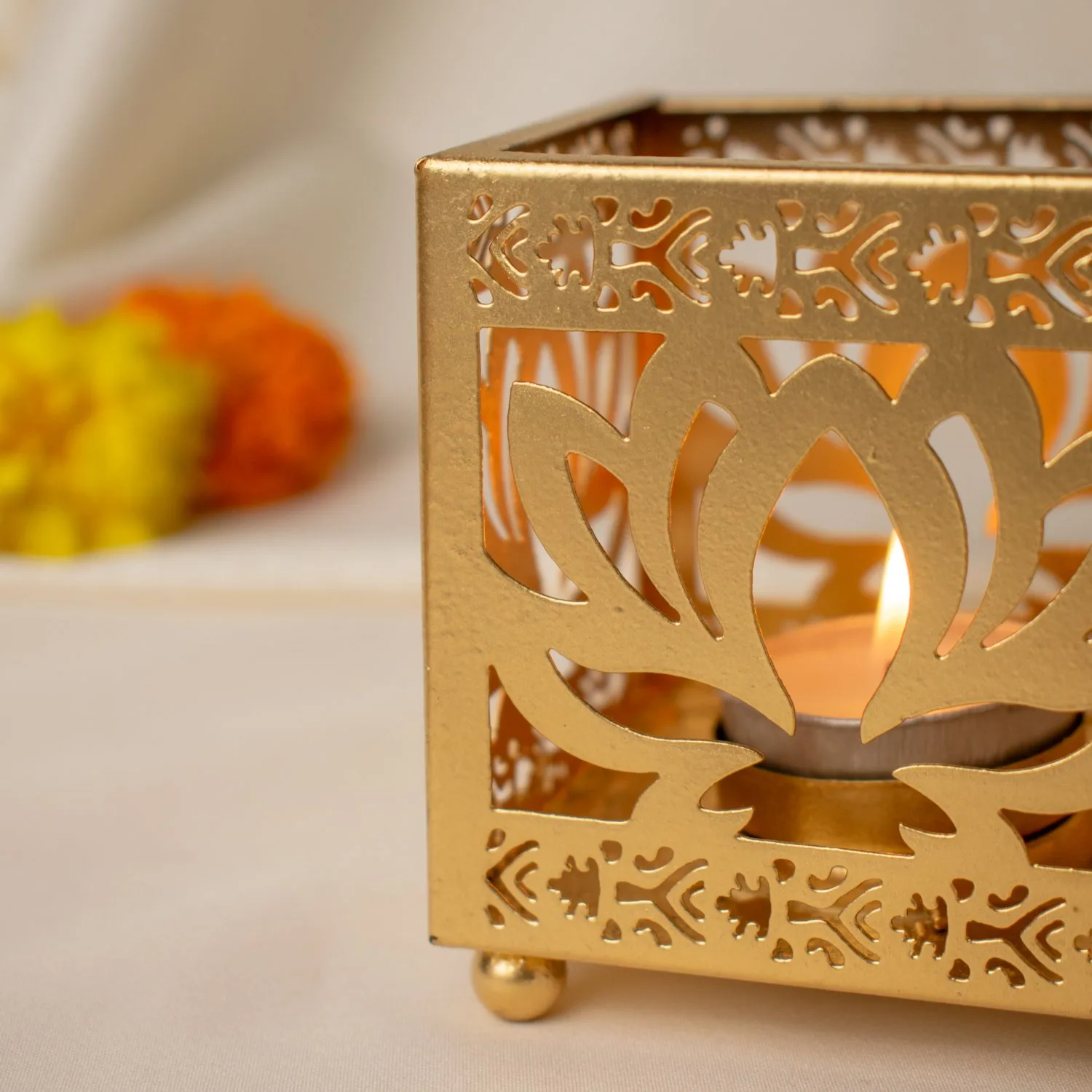 Luxury Lotus Cutwork Golden T-Light Holder