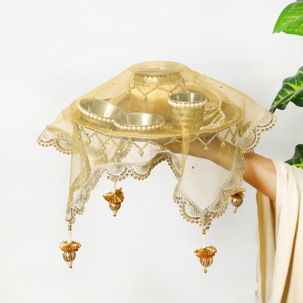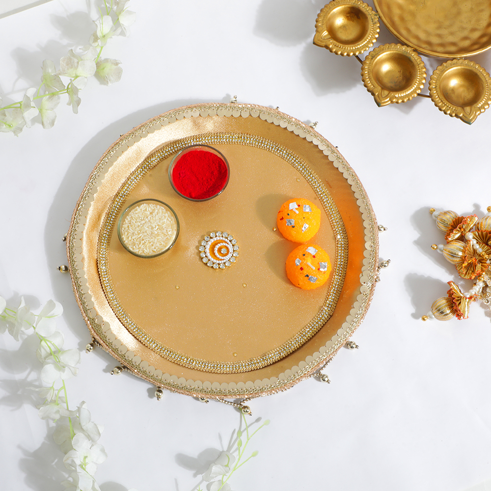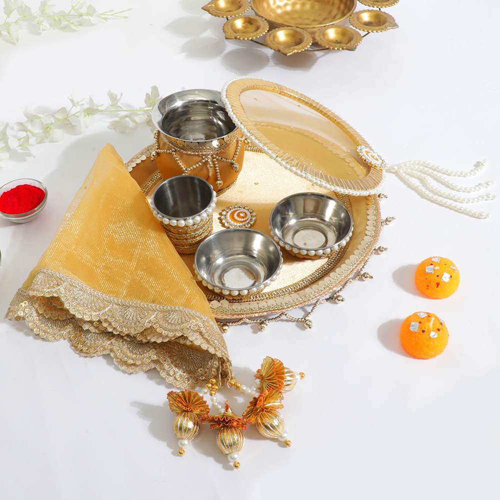 Elegant Pear Golden Karwa Chauth Thali Set