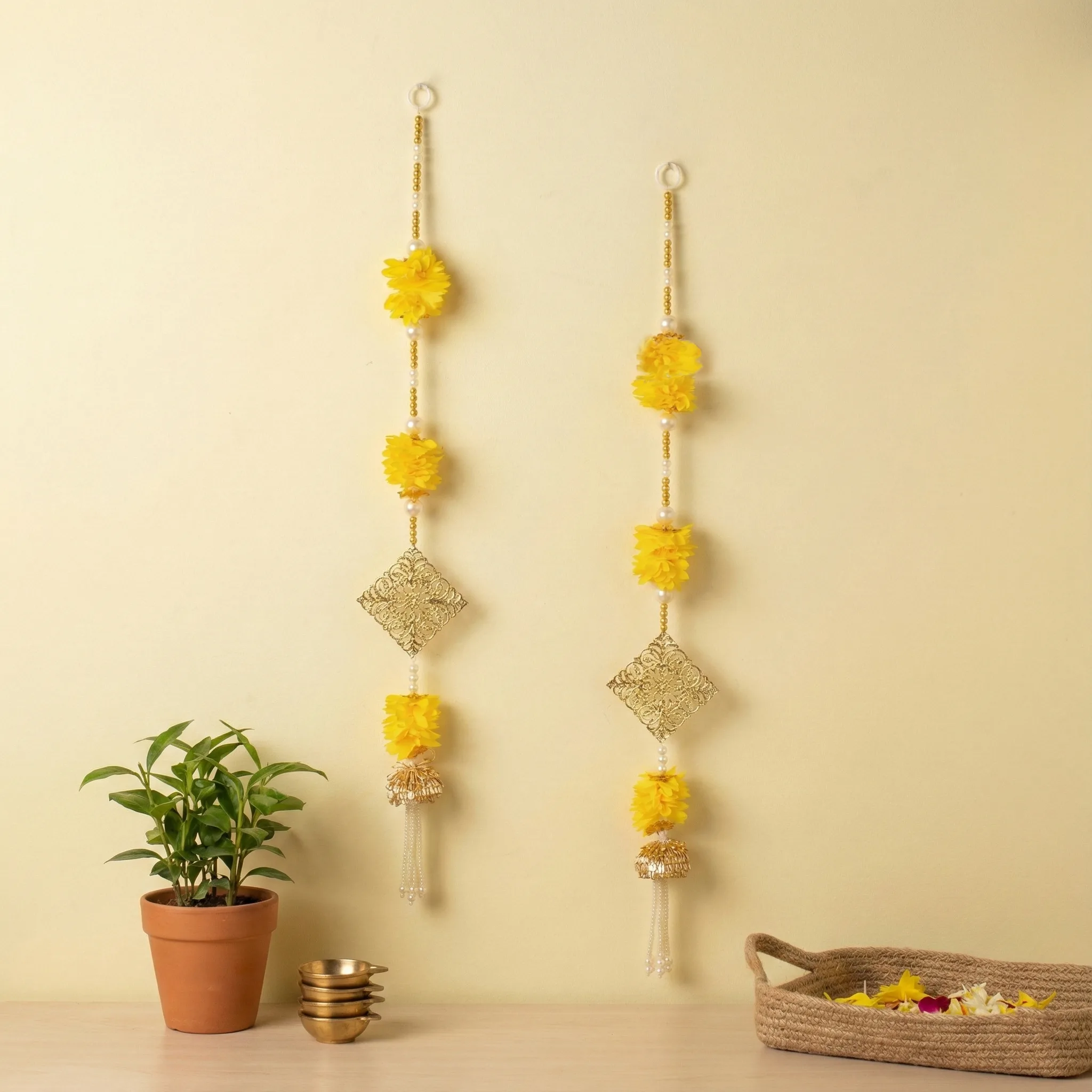 Elegant Yellow Floral Wall Hanging Set-of-2