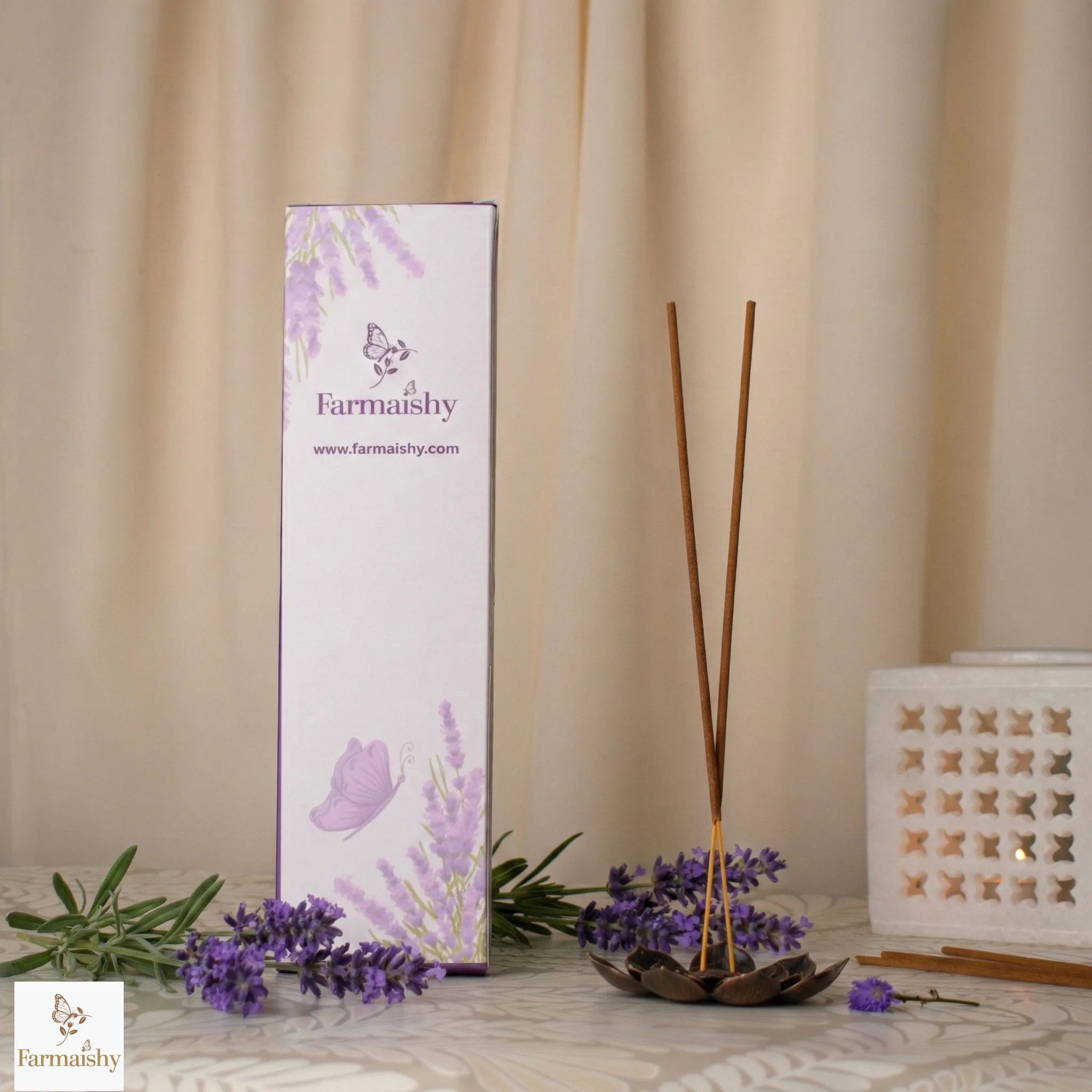 Transform the environment by creating a calming fragrance with Farmaishy’s Lavender Premium Incense Sticks, which are blended with the tranquil scent of soft lavender, calming the mind, reducing tension, and creating a serene spiritual environment.