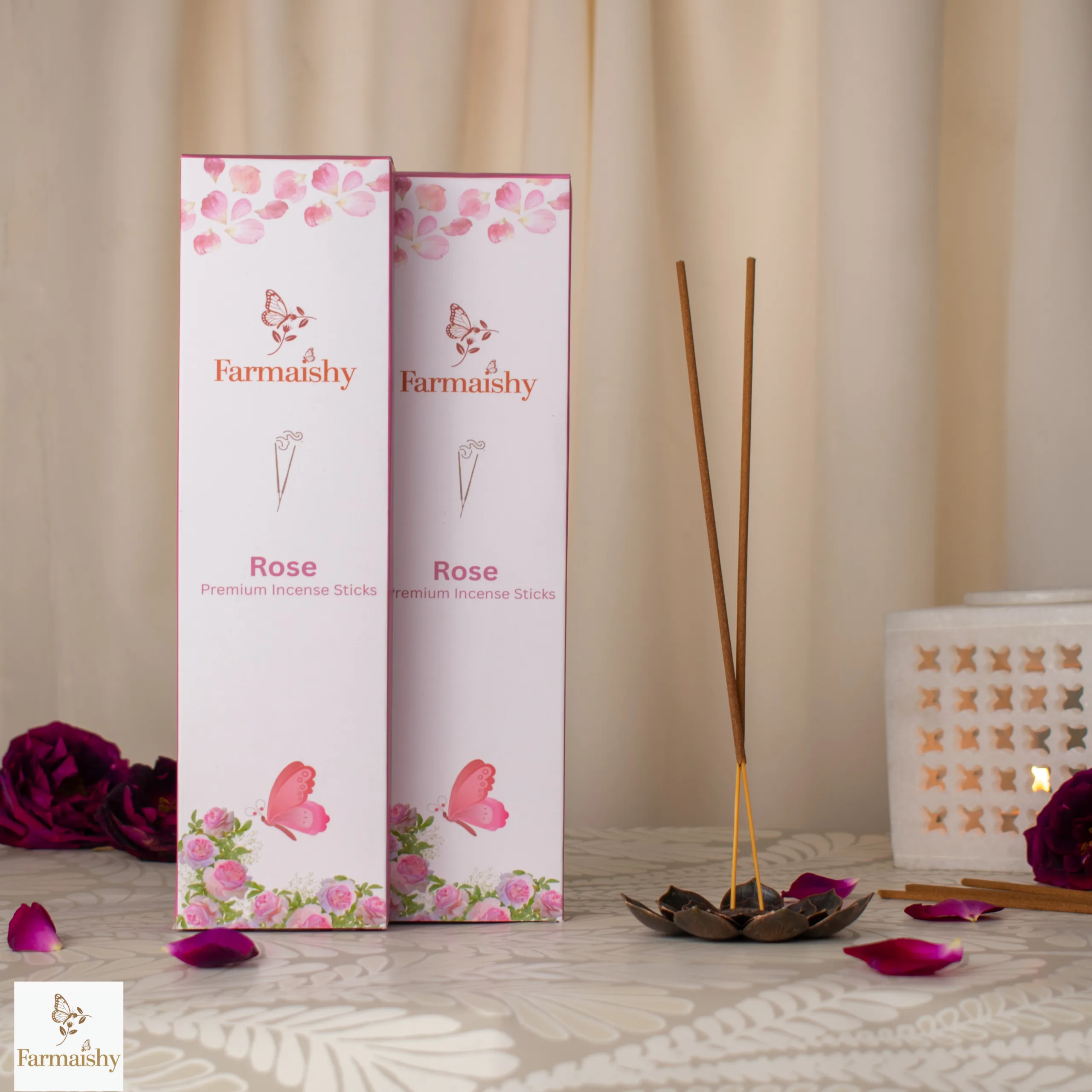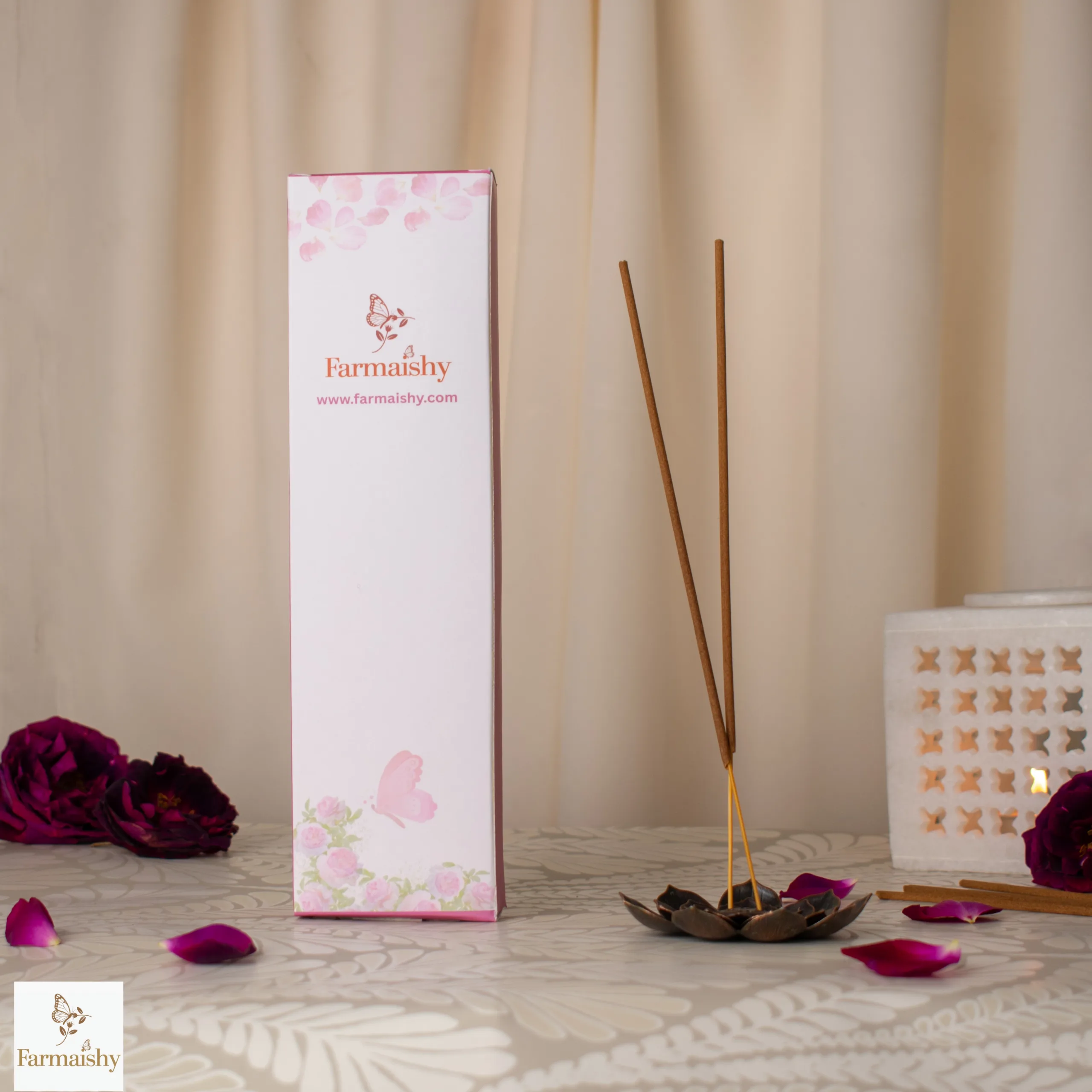 Surround yourself with the sweet and soothing floral scent of our Farmaishy Rose Premium Incense Sticks, which are infused with the essence of fresh roses, thus providing a relaxing, romantic, and spiritually elevating ambiance.