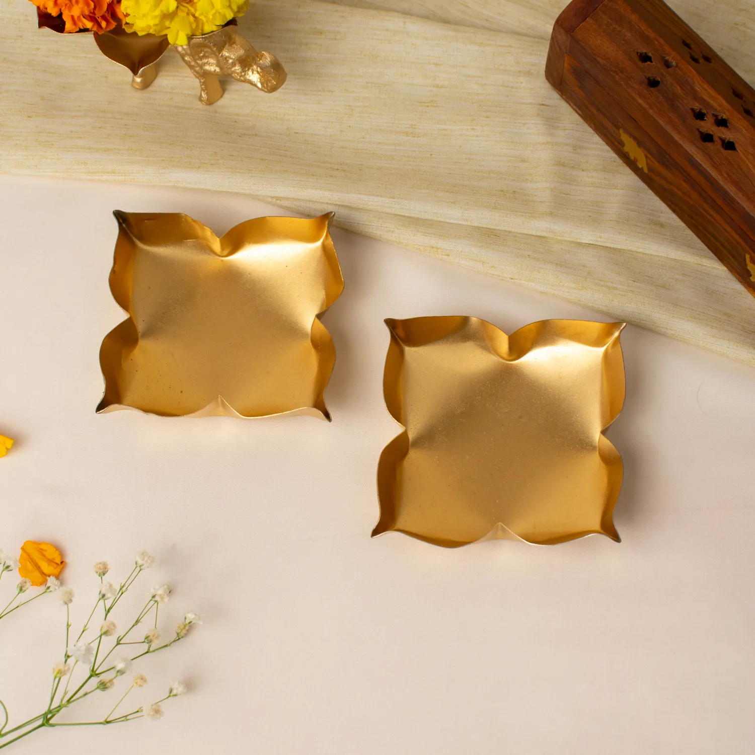Bring elegance and tradition into your worship practices and festivals with the Handcrafted Golden Pooja Thali Tray Set of 2. Crafted in the finest designs that come in the shape of a square and have curvatures around the edges, the trays come in the most attractive and elegant golden brass finish that is truly Indian.