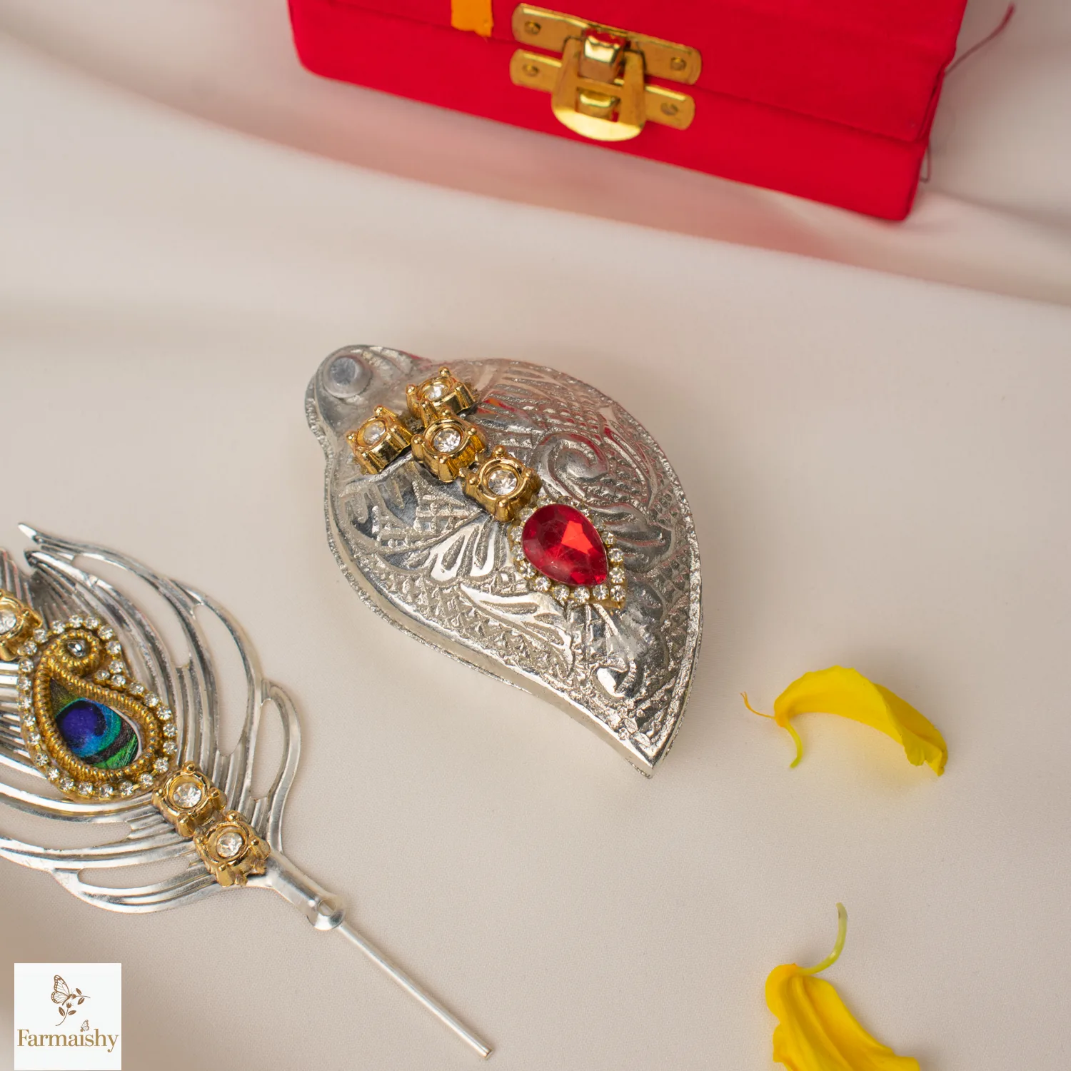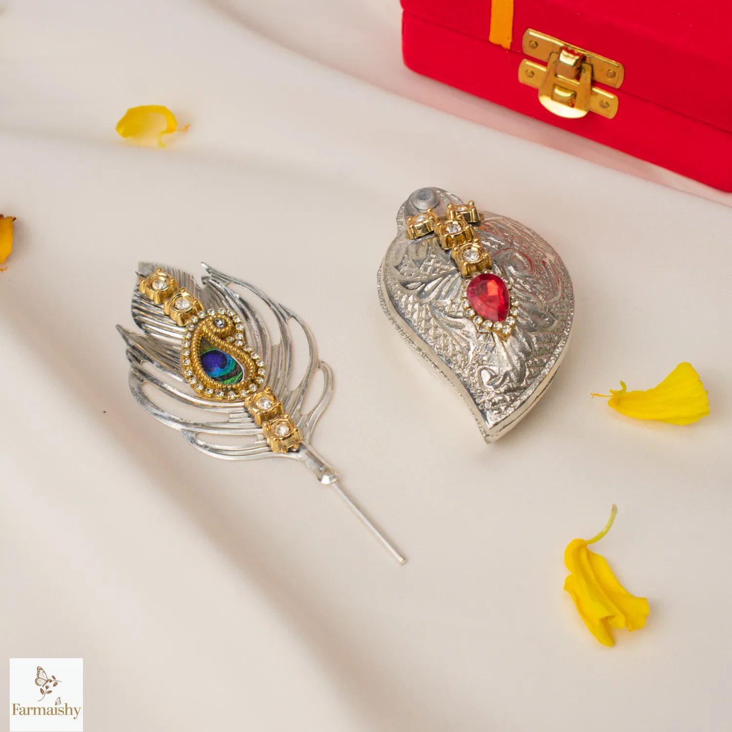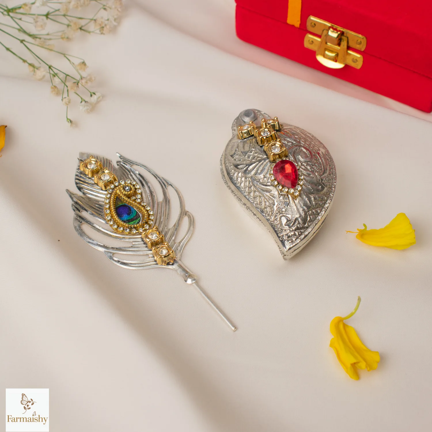 To worship and celebrate love and traditions, have the Handcrafted Krishna Pooja Akshat Roli Platter, crafted carefully to make your worship and celebrations more meaningful and awe-inspiring. The inspiration for the platter is drawn from the majesty and beauty of Krishna God.