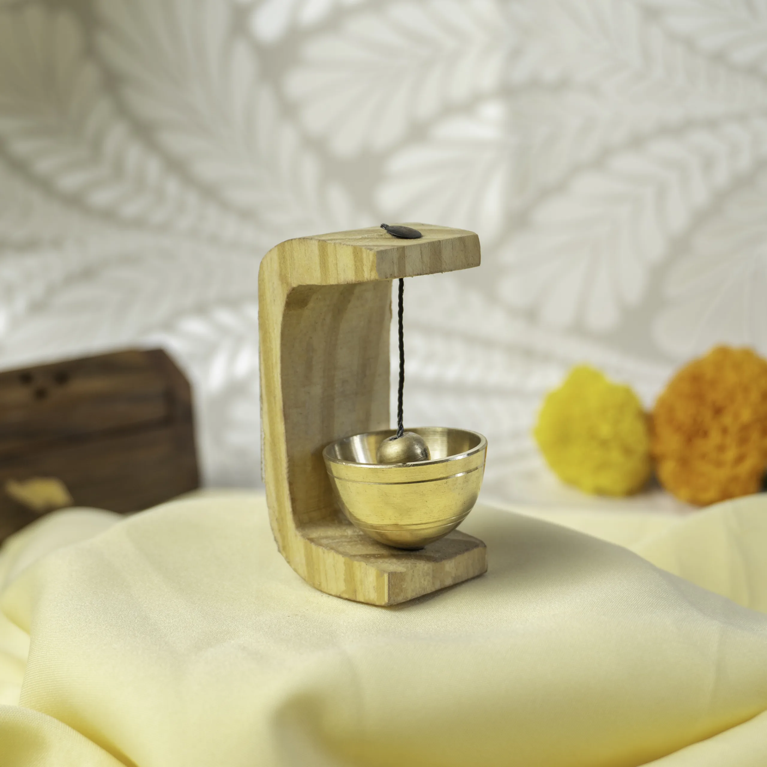 This is ideal for use in decorating homes, meditation nooks, pooja corners, or during festivities, where it creates a relaxing ambiance with its soothing audio produced by the swinging bell. Also designed with functionality in mind is the wooden pedestal, making it placeable on tables or near entrances without requiring any installations.