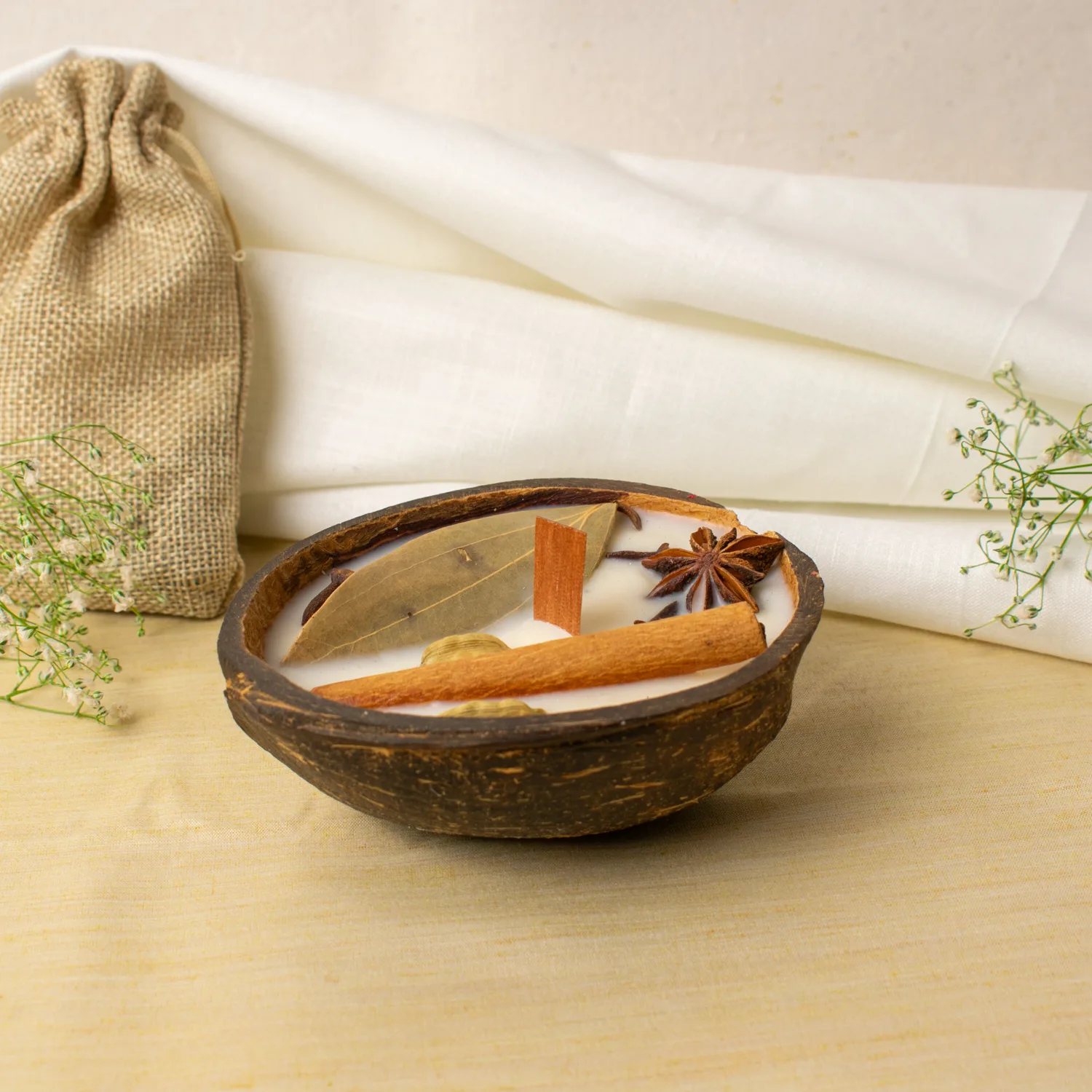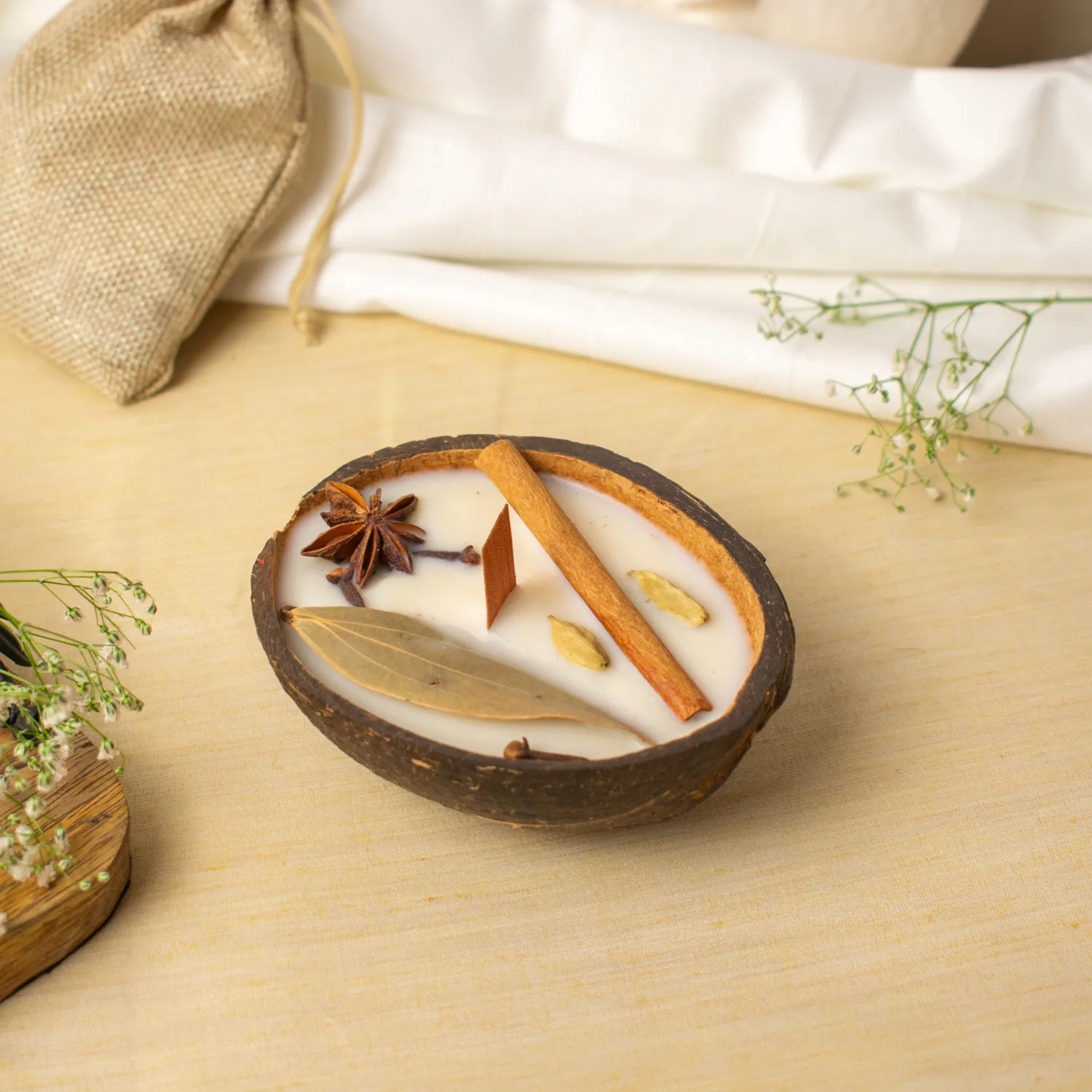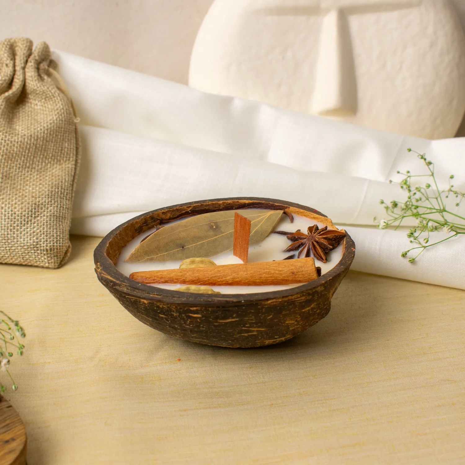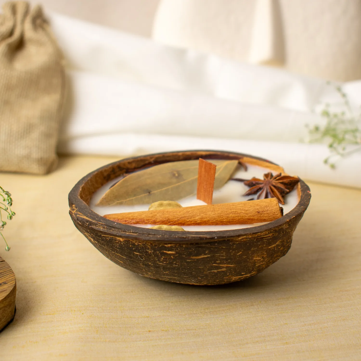 This so much more than home decor, this candle is an intentional act of natural living. The coconut shell holder lends rustic elegance, while the flame inspires an earthy ambiance that invites relaxation.