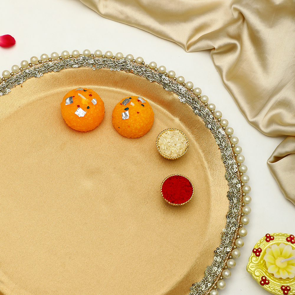 Ready to crank up the vibe at your next puja? The Royal Pearl Golden Pooja Thali isn’t just your average plate—it’s pure drama and old-school glam. I mean, just look at it: that shiny, pearl-like sheen with all those golden details? Total show-off, but in the best way. It’s sturdy, so no worries about clumsy hands, and it’s got enough space for all your ritual stuff—diyas, incense, you name it. Honestly, it makes the whole prayer thing feel way fancier. Perfect for big-deal days like weddings or Diwali, but, hey, even your everyday prayers deserve a little sparkle, right? This thali basically screams, “Respect the tradition, but make it fabulous.