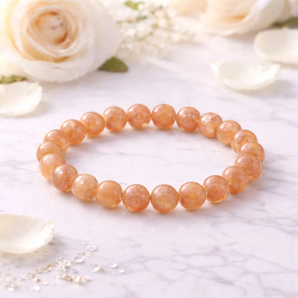 This sunstone crystal bracelet features smooth, rounded crystals in a comfortable stretch design.