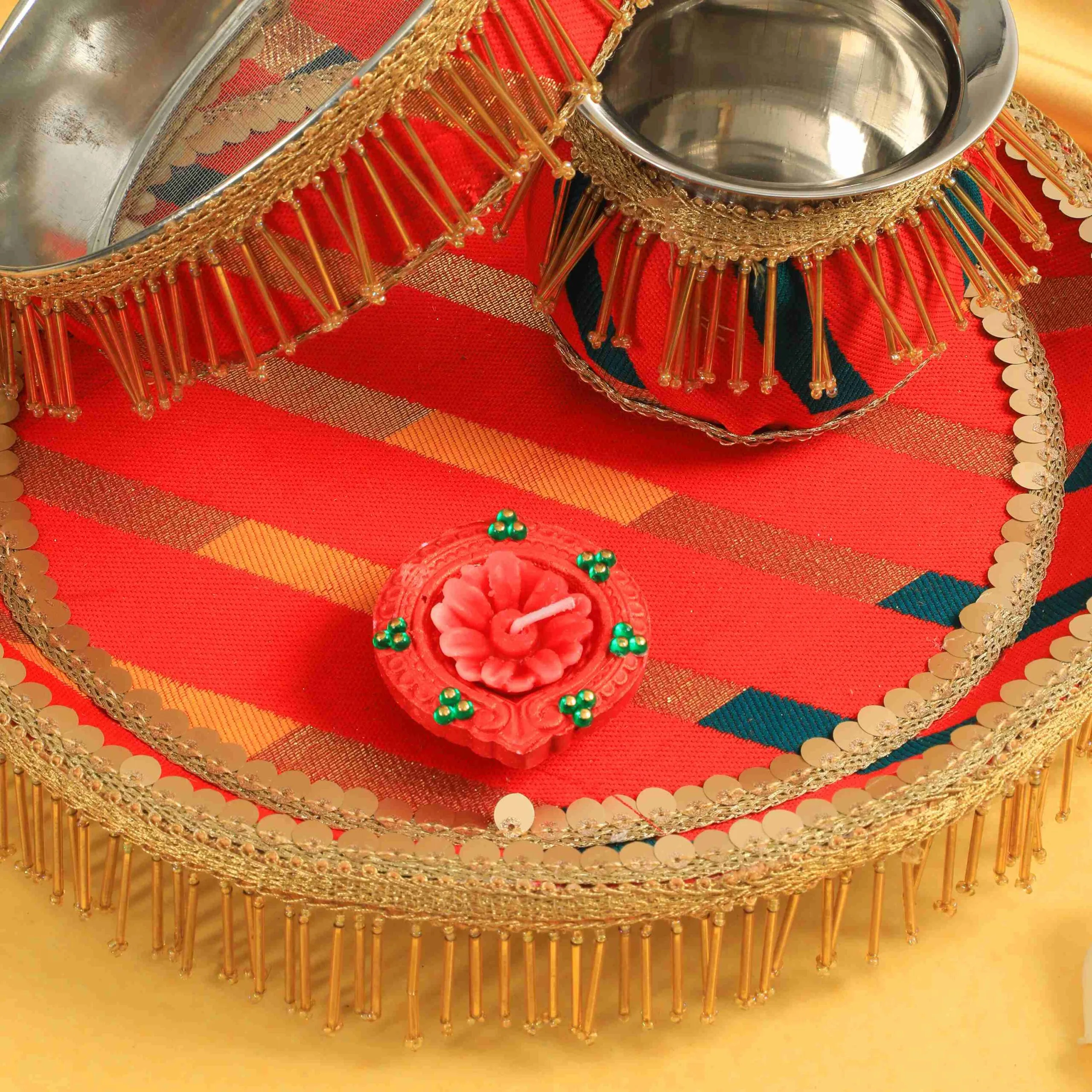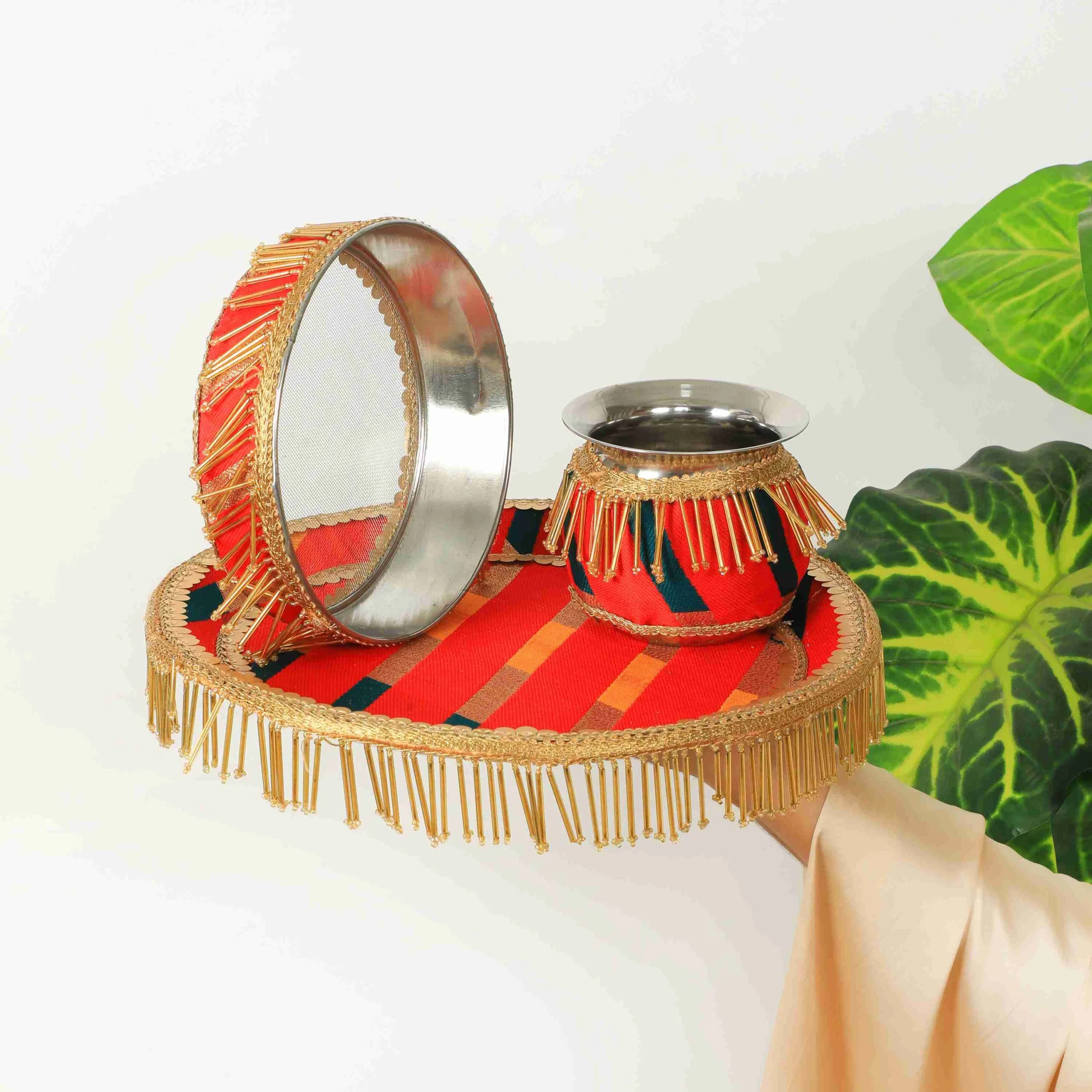 Traditional Red Karwa Chauth Thali Set