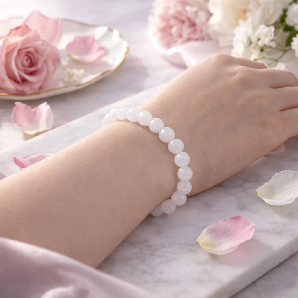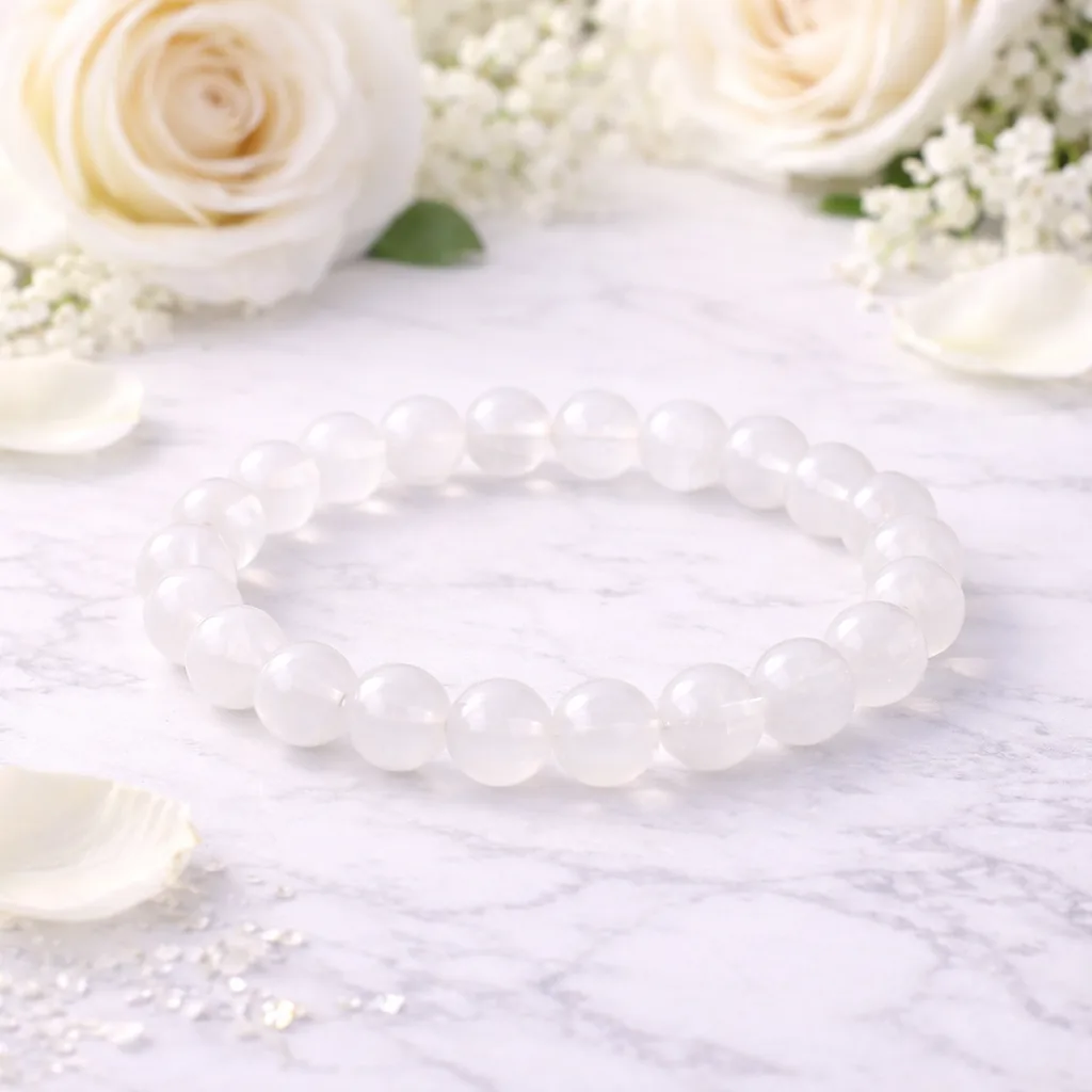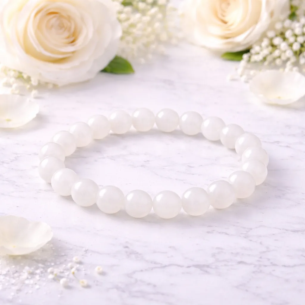 Elegant, smooth, and refined, the White Jade Beaded Bracelet is made of natural white jade crystal beads with a smooth polished finish.
