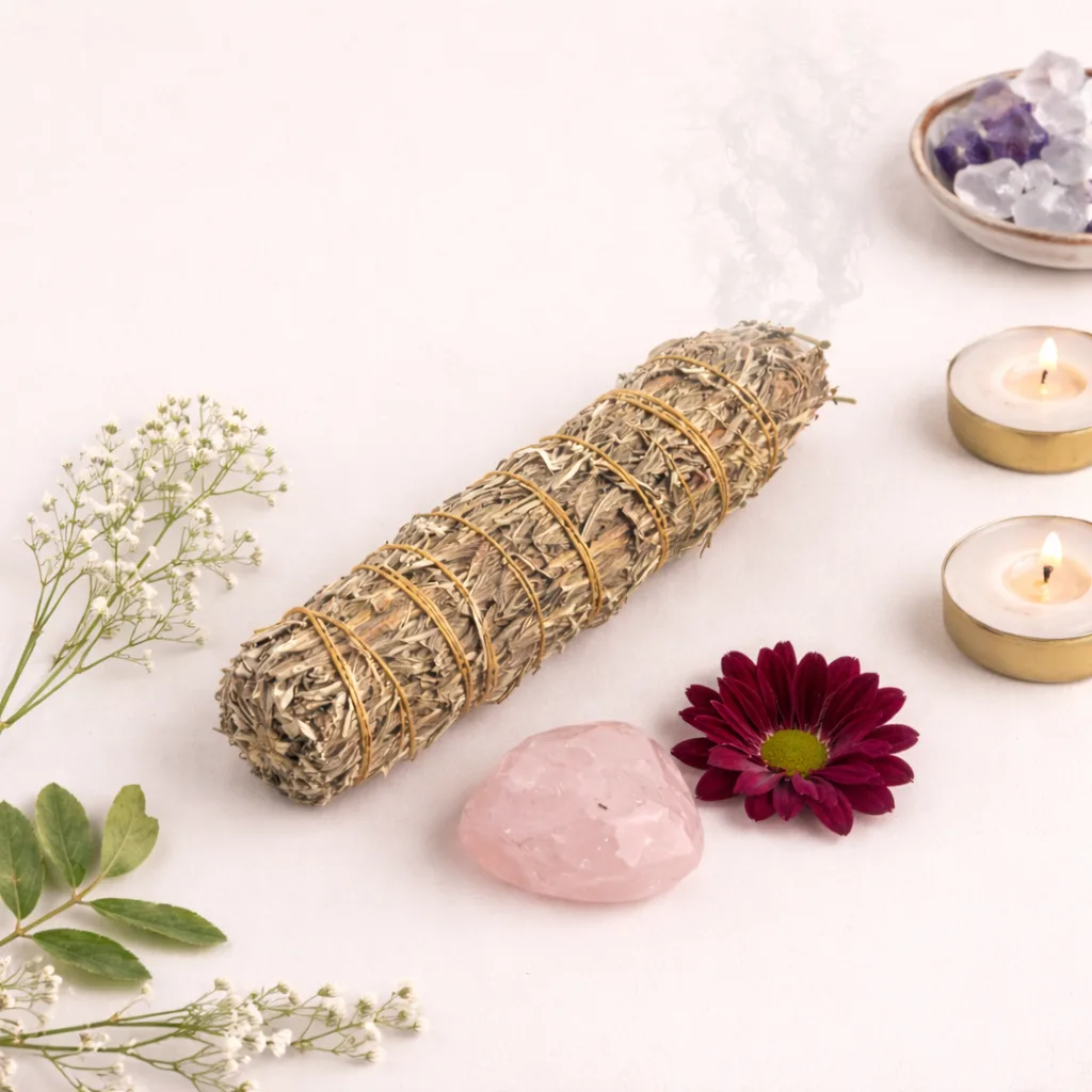 The White Sage Rosemary Sage Smudge Wand is a combination of the purifying abilities of White Sage and the invigorating and protective scent of Rosemary. This wand has been traditionally employed for purification rituals, aura cleansing, and meditation rituals and is capable of removing stale energies while inducing concentration and calmness of the mind and spirit.
